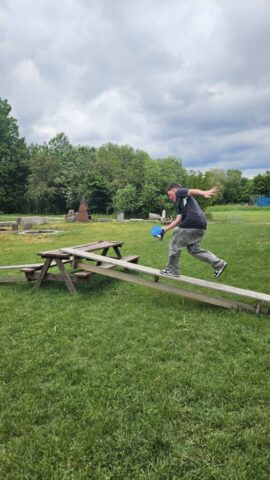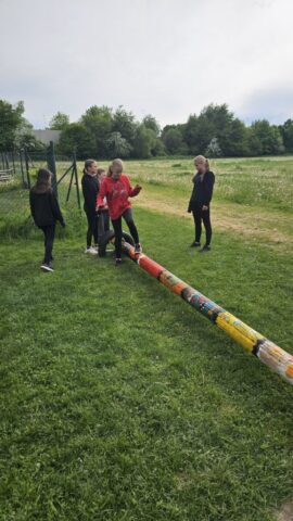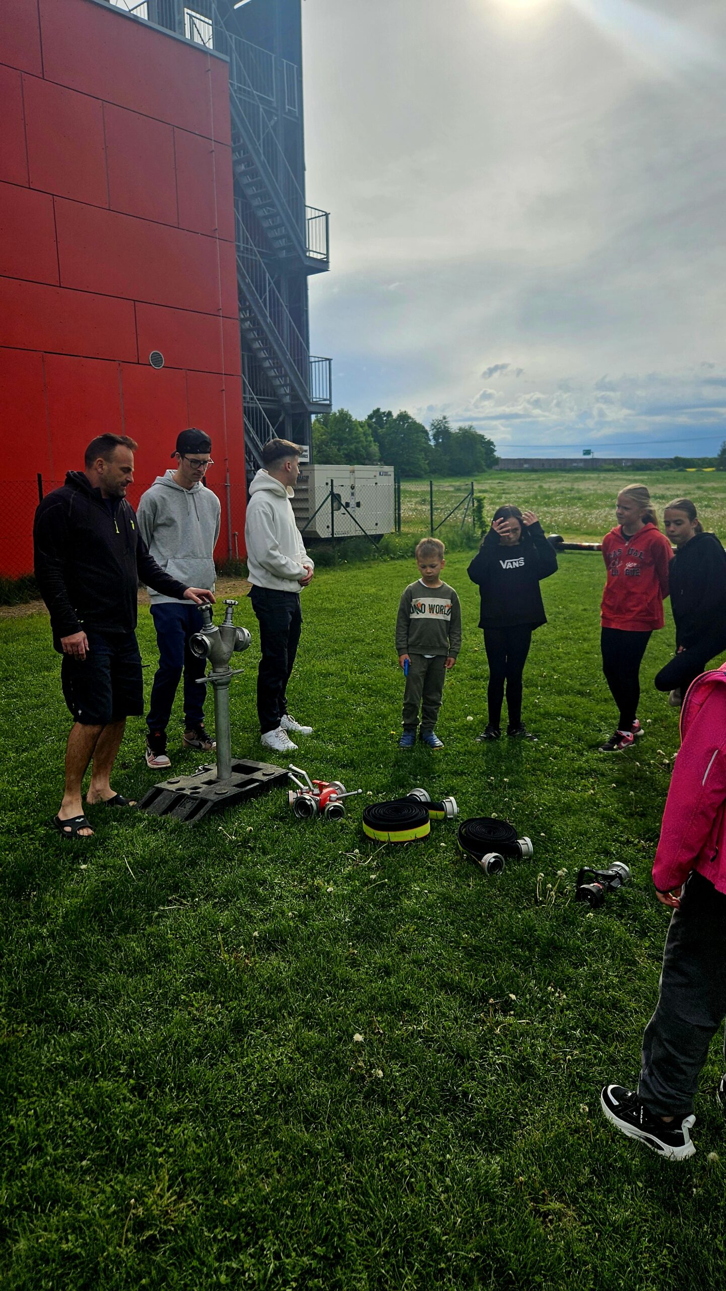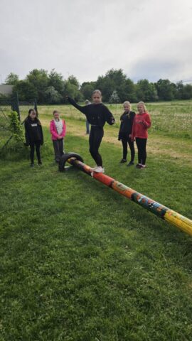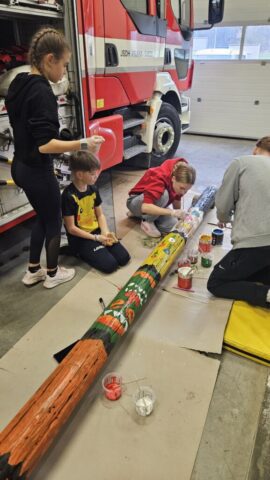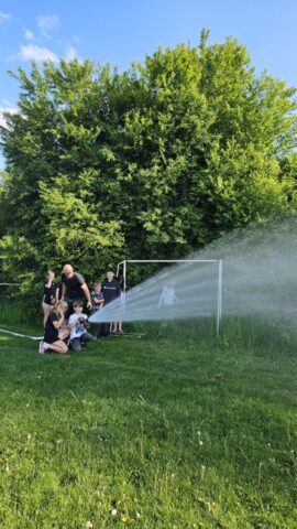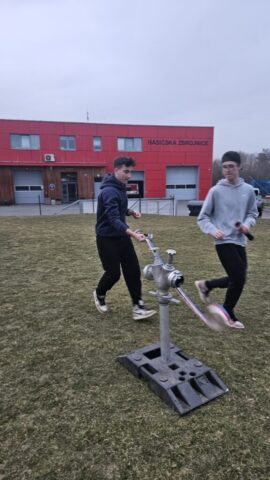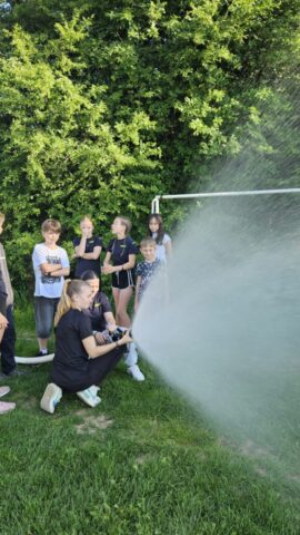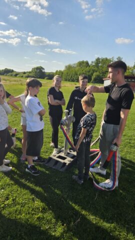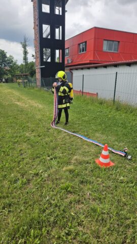 Březen – červen 2025 Od jara do června jsme se na schůzkách věnovali trénování štafety požárních dvojic, práci s proudnicí, běhu v zásahovém obleku, pomáhali jsme s přípravami na kulturní akce – sbírání dřeva, skládání krabiček na občerstvení, čištění rybníka od řas na chystanou neckyádu a v neposlední řadě se děti zapojily do výzdoby kůlu určeného na trénování stability.