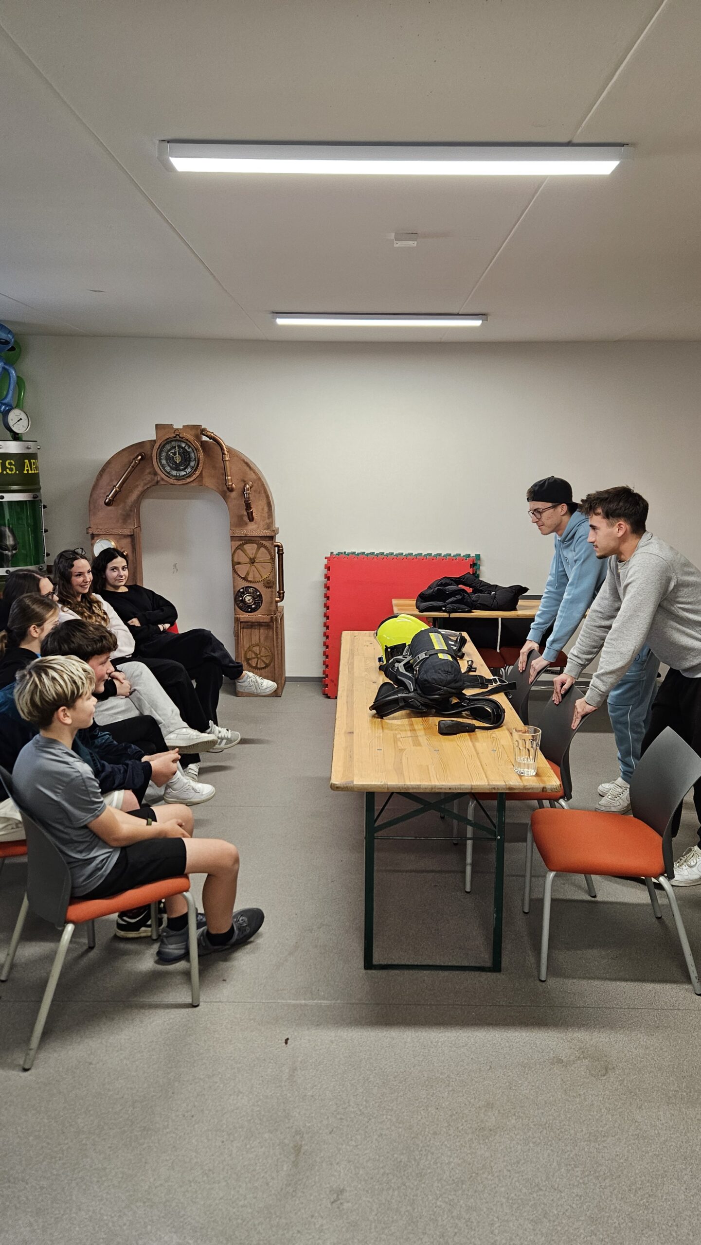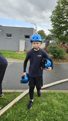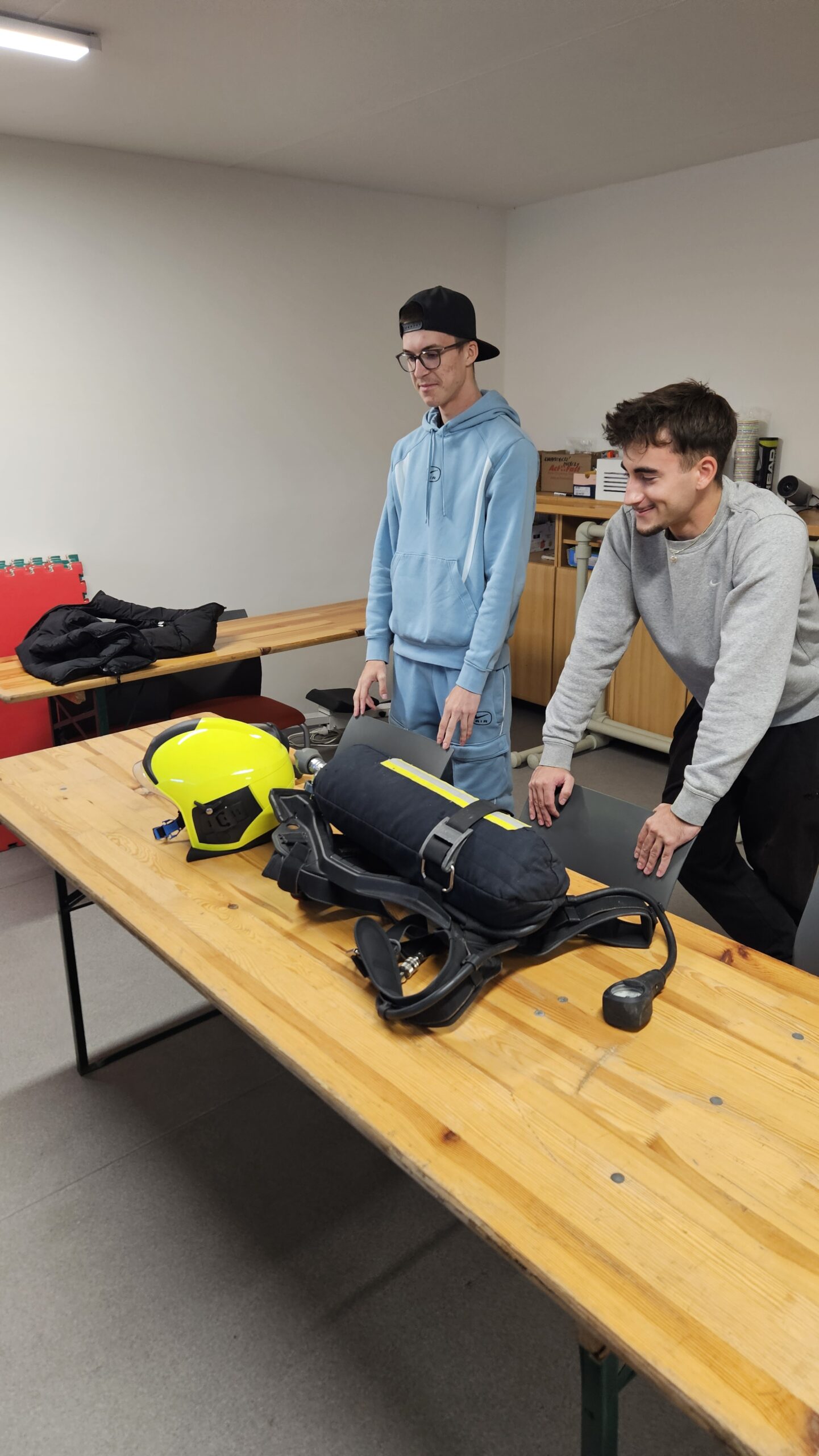 Říjen 2025 Mezi naše mladé instruktory patří Dominik Vlach a Ivan Křížek ml., kteří jsou členy kroužku mladých hasičů už od jeho založení. Minulý týden absolvovali kurz pro nositele dýchací techniky a o nové znalosti se nyní podělili s dětmi na schůzce. Dětem vysvětlili, jak funguje tlaková láhev, jak se kontroluje a správně nasazuje.